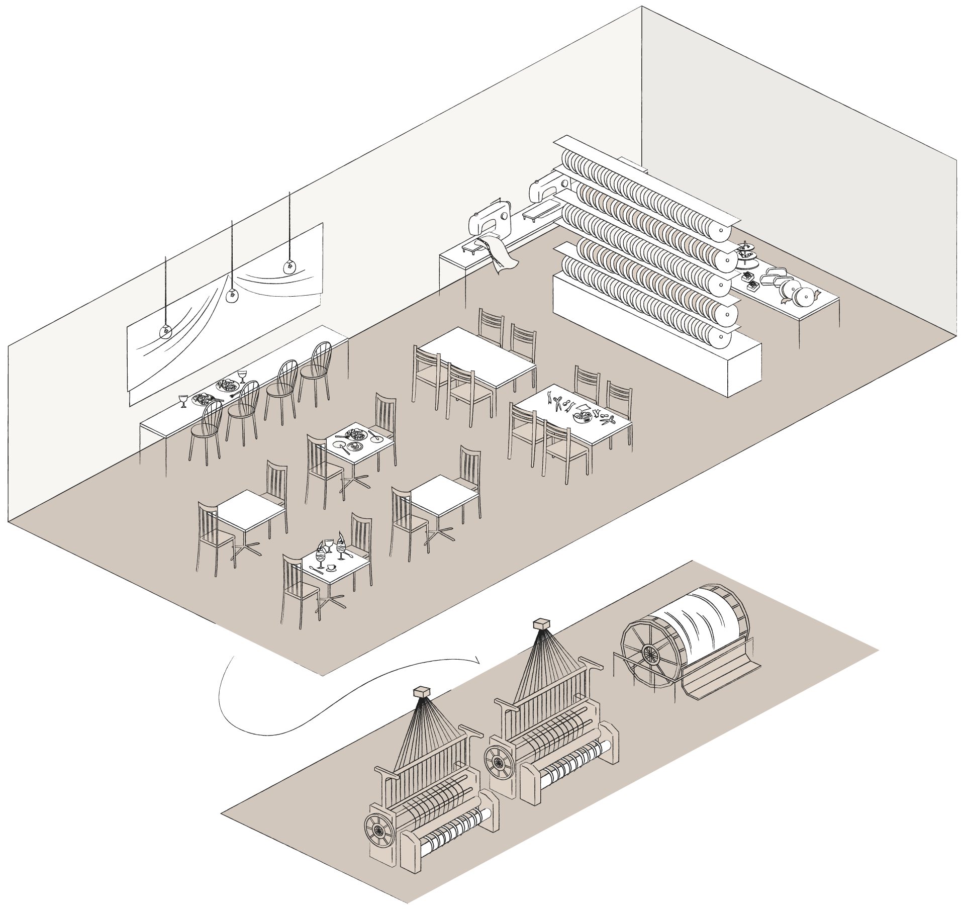 まちの歴史を受け継ぐリボン工場を見学しませんか?工場のスタッフが、工場とリボンの魅力をお伝えします。1本1本の糸からチロルリボンが織り上げられていく過程を、間近でご覧いただけます。タイミングが良ければ、職人さんの伝統ある技も目の前で観察できますよ。リボンの魅力の奥深さにぜひ触れてみてください。(事前予約制・有料)